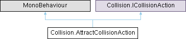 Details the action to be taken when a collision occurs with the target. In this class the target is attracted to the collider. The strength of the attraction can be specified. More...