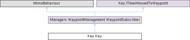 The WaypointSubscriber is expected from Key gameobjects as it helps the CameraFollow Any actions required on collision(by the player) are managed by the field linking to the KeyActionController It will update to the next waypoint(which there needs to be or camera follow will get confused) More...