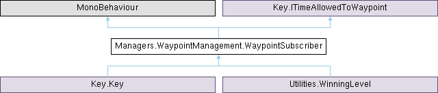 WaypointSubscriber is a unity object class used as the base class for Key The Key will be a waypoint and can have a set time get to the waypoint. More...